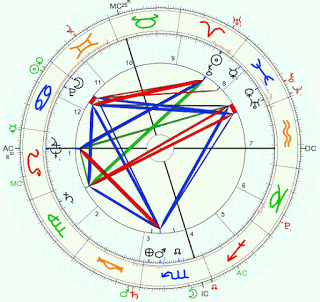Al momento de su deceso, Urano transitaba sobre su Sol natal en VIII y cuadraba a Plutón, haciendo un Dedo de Dios, con quincuncios a Marte y Saturno natal. Plutón en tránsito, por su parte, regente de Casa IV (final de la vida) cuadraba también al Sol, regente del Ascendente y símbolo de la vitalidad y de la vida misma y formaba una oposición a su Plutón Natal.
